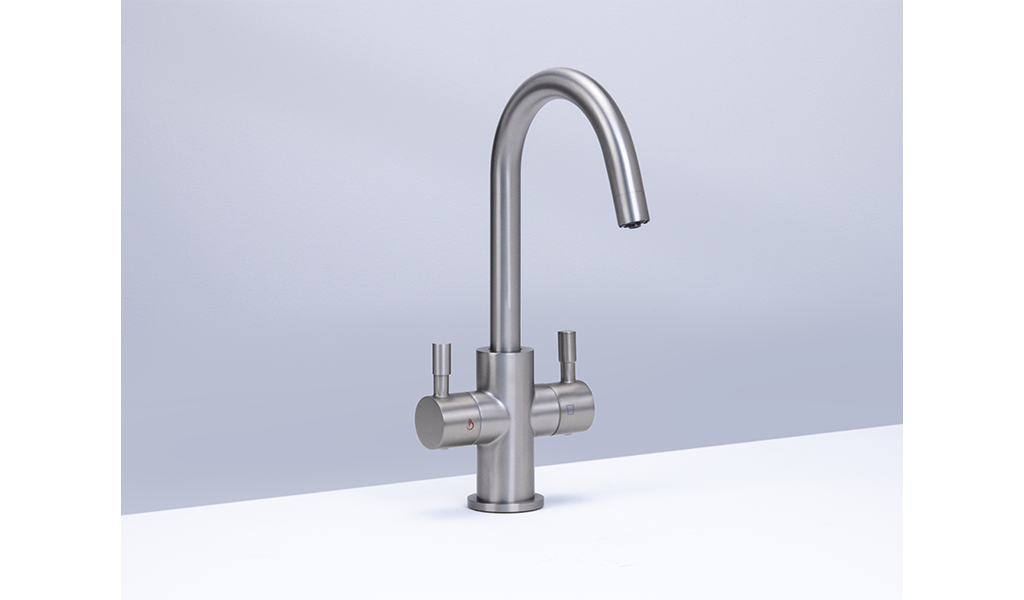 The 2 in 1 system includes the DUO stainless steel boiling and filtered tap, under sink boiler unit, 0.5 micron quick-change filter cartridge, pressure limiting valve (PRV), shut-off valve, and all required installation fittings and instructions.